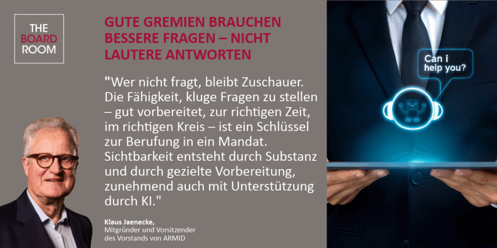 Wenn in Gremien die Lautstärke über die Richtung entscheidet, verliert oft die beste Idee. Wirksame Aufsichtsräte sind heute weniger Antwortmaschinen als Architekten guter Fragen. Sie schaffen Rahmenbedingungen, in denen Widerspruch erwünscht ist, Perspektivwechsel gelingen und Entscheidungen auf einer tragfähigen Informationsbasis getroffen werden. Die zentrale These dieses Beitrags:
